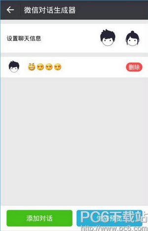2、在微信对话生成器主页面用户可以设置聊天信息,同时还可以添加对话;
