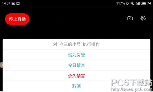 点击弹幕可弹出设置房管和禁言操作框