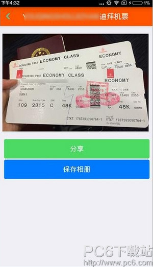 4、这样你的迪拜机票就生成好了!是不是很炫酷呢!可以分享,还可以保存到相册哦。