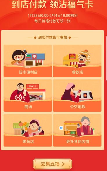 支付宝五福是哪五福?今天该活动正式启动,和去年一样,需要收集“五福”:富强福、和谐福、友善福、爱国福和敬业福。