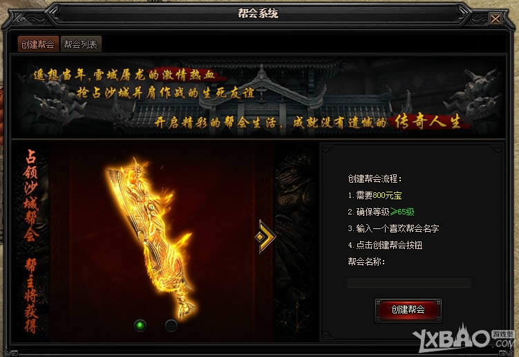 角色等级达到65级,就可以创建或加入一个帮会,与众多好友一起打怪爆装,征战沙城了!