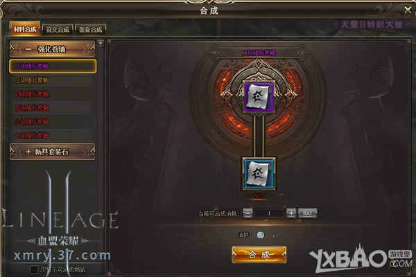 装备合成界面中,有标明每种道具的合成公式,可供玩家参考。天堂武器的合成,需要多把天堂武器和天堂石,天堂石可通过天堂盛典活动获得。