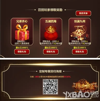 有些人一转身,就会碰见。所以我带着波涛汹涌的想念,出现在昨天彩色的回忆里。活动期间,加入老友召集活动,生成自己的专属召唤码,帮助您的老兄弟完成回归任务,获得丰厚奖励。更有私人定制海报,为你的青春喝彩。用这份独特的老友祝福,将那回不去的从前实现,岁月苍惶无悔,三年、十年、归来我们仍是年少。