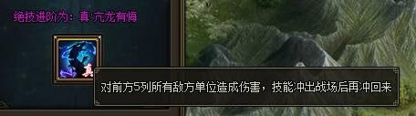 真·亢龙有悔效果:对前方5列所有敌方单位造成伤害,技能冲出战场后再冲回来。