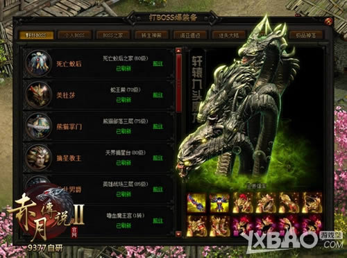 除了新增的BOSS外,9377《赤月传说2》更新增了14转轩辕装备。战士职业新增轩辕盘古系列14转装备;法师职业新增轩辕伏羲系列14转装备;牧师职业新增轩辕神农系列14转装备。